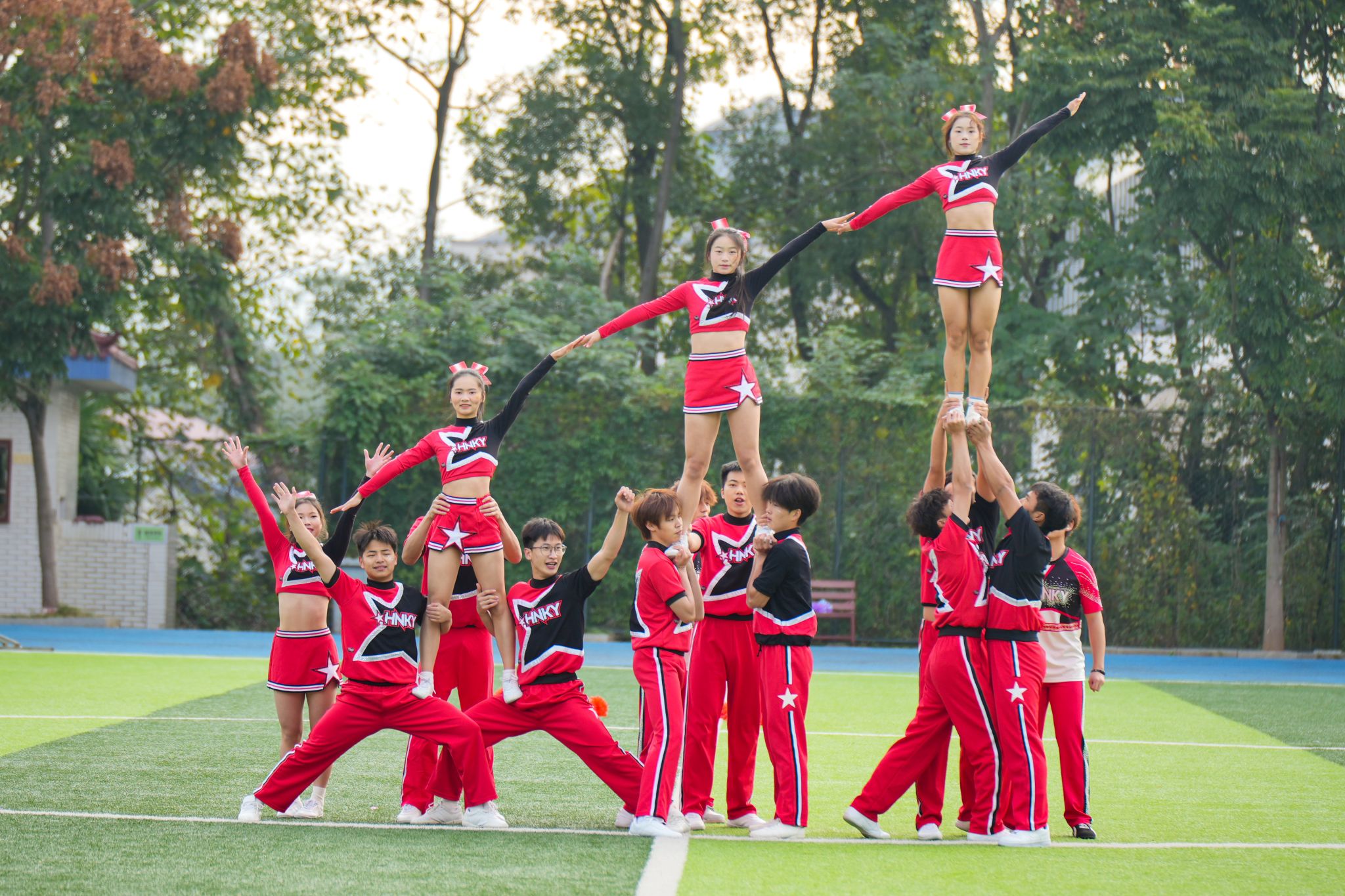 五颜六色的气球放飞天空,全场掌声雷动。在观众热情的欢呼与喝彩声中,体育学院的健儿们表演节目《武林风采》,打出了东安拳的气势,打出了运动健儿们的态度与信心。美术学院、体育学院、音乐与舞蹈学院联合演绎的啦啦操《青春正当时》活力登场,这支队伍曾亮相湘超赛场,为永州VS长沙赛事助力,马上又将助阵永州迎战娄底。校运赛场与湘超赛场相连,动感舞姿串联赛场激情,绽放竞技与活力的双重魅力。