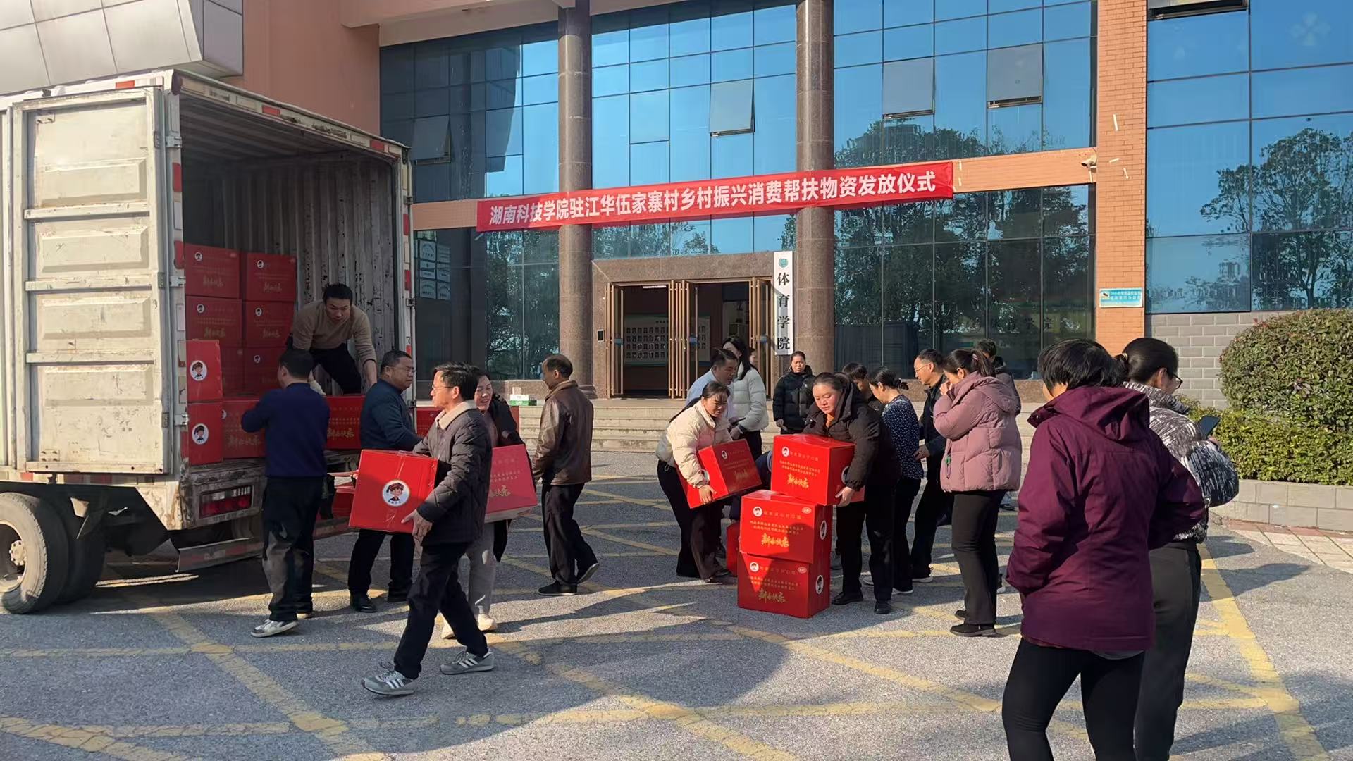 本网讯(通讯员 陈勇国 蒋阅)清香醇厚的山茶油、金黄透亮的菜籽油,颗粒饱满的生态大米,以及纯手工制作的红薯粉……1月14日,一场特别的乡村振兴消费帮扶物资发放仪式在我校举行,来自瑶乡深处的优质土特产被整箱包装,以“帮扶套餐”的形式发放给全校教职员工。