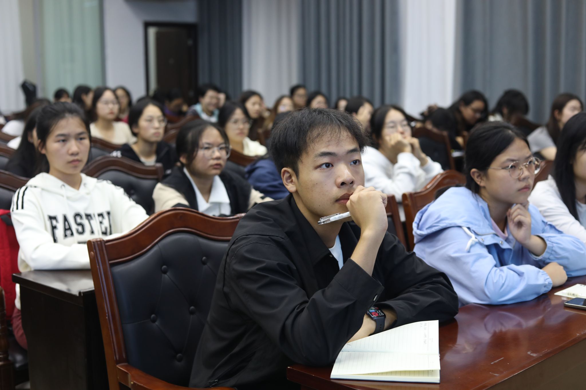 在交流互动环节,同学们积极提问,李国润针对合理规划大学时光等方面进行了详细解答。