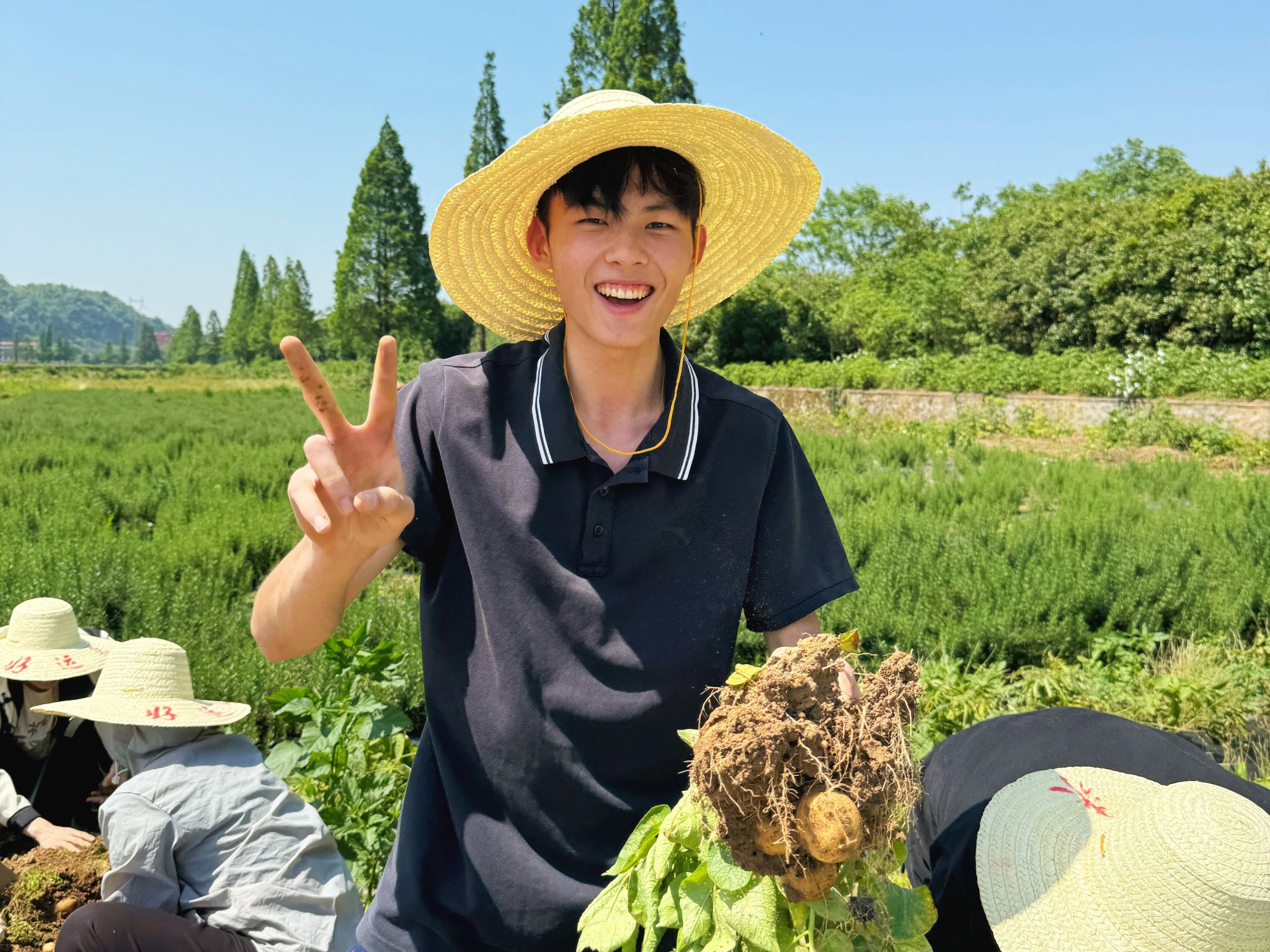 活动结束后,2024级数学与应用数学(师范)专业的罗俊湘同学迫不及待地和大家分享自己的实践感悟:“这次实践活动如同一把钥匙,为我打开了认知农业的全新大门,弯腰劳作的艰辛,让我真真切切领悟到了“粒粒皆辛苦”的分量。泥土的温度、收获的喜悦,都让我无比期待下一次实践。”