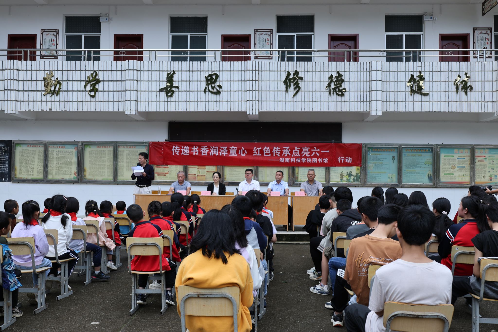 本网讯(通讯员 蒋海明)5月30日,学校图书馆(档案馆)携手双牌县塘底乡政府,共同开展了“传递书香润泽童心,红色传承点亮六一”主题活动,为乡村留守儿童送去知识与温暖,让红色文化在孩子们心中生根发芽。