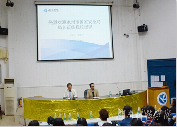 本网讯(记者 米珈仪 朱子健 李伟卿 摄影 邓强)为进一步加强国家安全宣传工作,提高广大师生国家安全和反间防谍意识,11月1日晚,由校保卫处、传媒学院联合开展主题为“维护国家安全,共筑和谐校园”的《反间谍法》知识讲座在日新楼212报告厅顺利进行。永州市国家安全局局长罗国飞应邀主讲,保卫处处长吴春江主持。传媒学院全体教职工、团学联干部以及全体大一学生参加此次讲座。