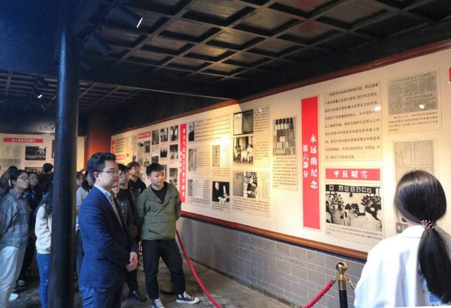本网讯 4月18日,理学院学生党支部组织青年党员、团员60余人赴李达故居开展党史学习教育。理学院学生党员组成的宣讲团向大家讲解了李达“坚持真理,不屈不挠,身体力行,万世师表”的光辉一生,带领大家一起学习了党的早期历史。学生党员还重温了入党誓词。