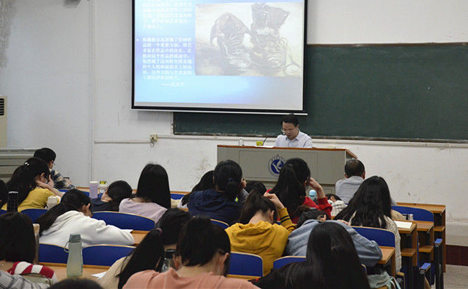 李建盛为人文学院师生作了题为《解释的可能性:梵高的〈鞋〉与思想家们的笔墨争锋》的学术讲座。他以梵高的绘画作品《鞋》为例,介绍了海德格尔、夏皮罗、德里达、詹姆逊等哲学家、艺术家对《鞋》的不同阐释,描述了再现、表现、象征、解释框架的投射的艺术认知路径。他指出对已有问题、已有认知理解把握之后,就能得出新的认知,做出新的阐释,人们面对艺术的认识过程就会永无止境。