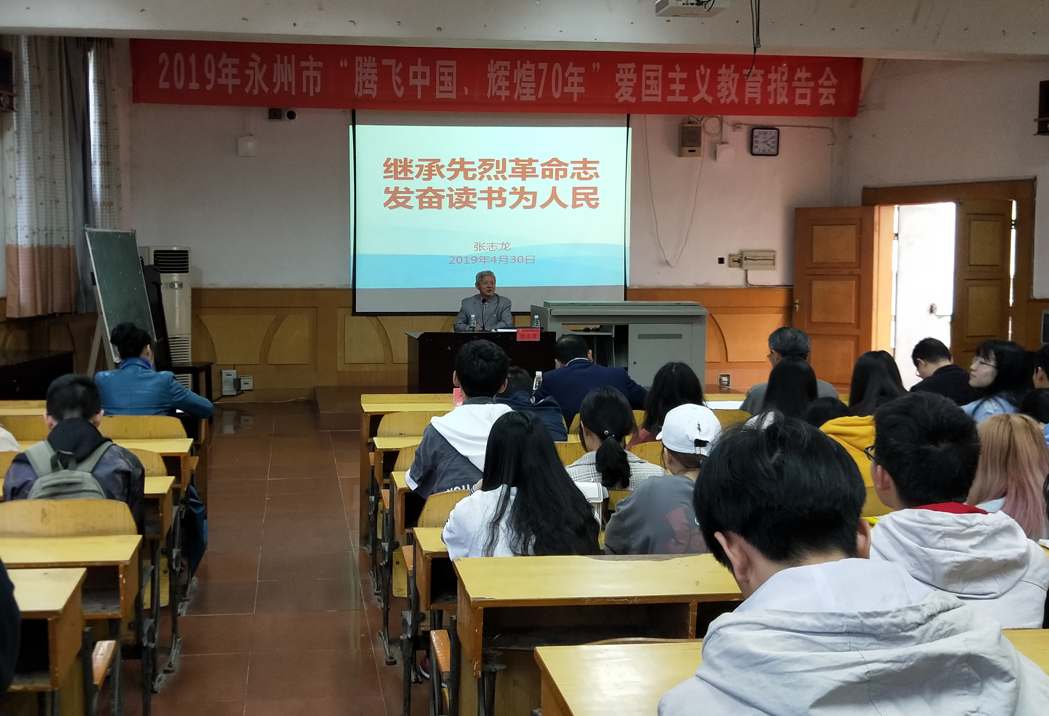 本网讯 4月30日由永州市关工委、市教育局、市委老干部局、市委党史研究室、市文明办联合主办的腾飞中国,辉煌70年爱国主义教育报告会在我校举行,校关工委全体人员以及150余名学生参加活动。